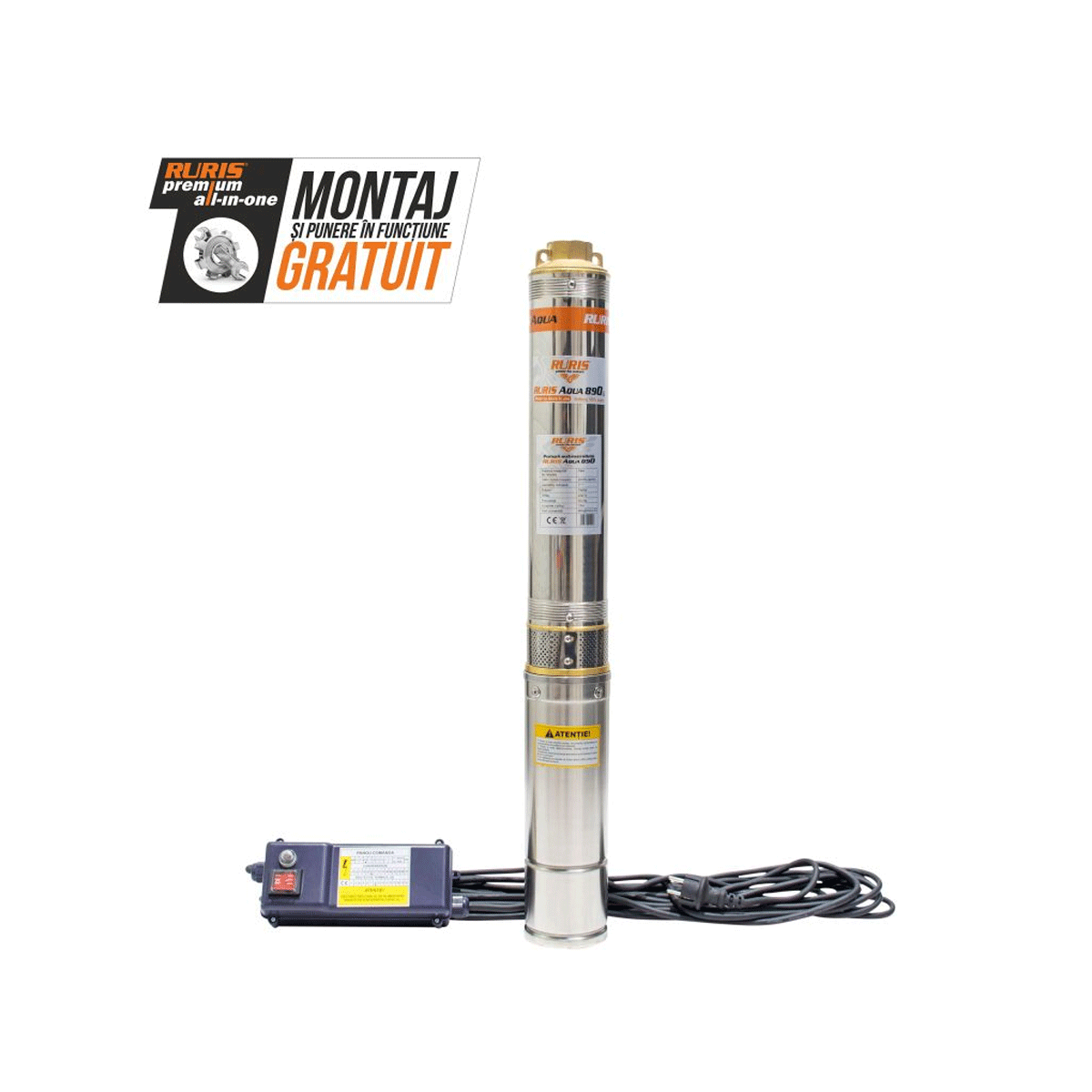 Pompa submersibilă RURIS Aqua 890 se livrează cu panou de control și cablu de alimentare cu lungimea de 15 m.